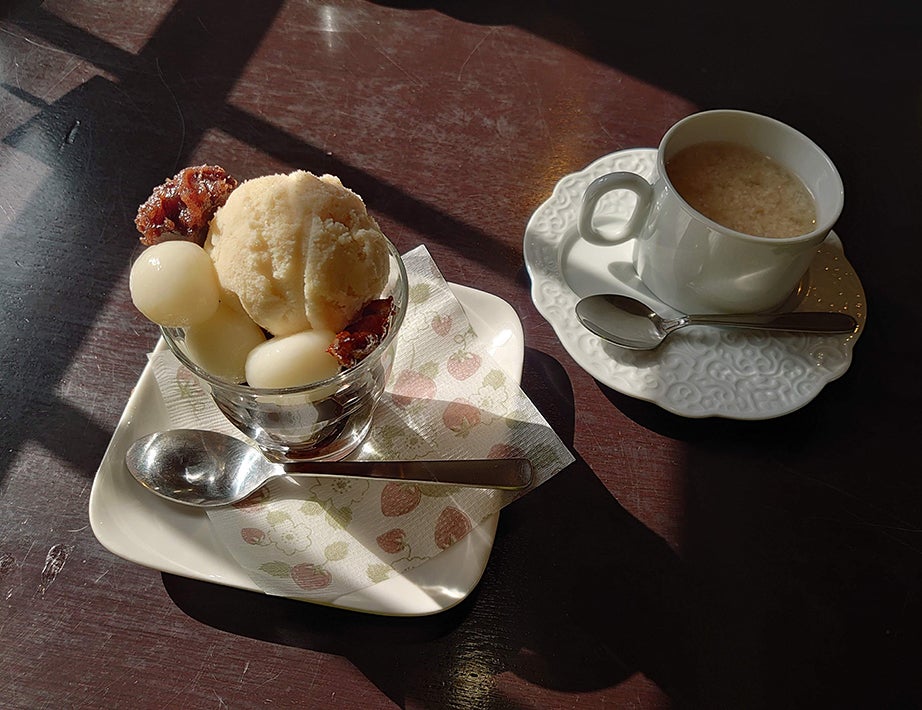 酒粕の甘酒と甘酒ぜんざいが、体にあったかーく優しく染み込んで美味しかった〜。