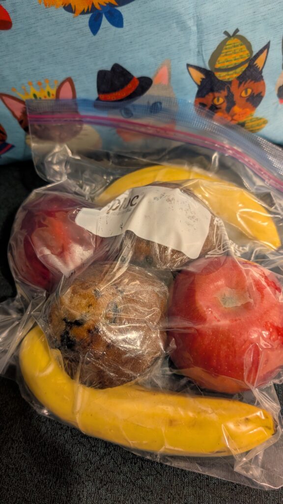 飛行機でお食べ、って朝食を用意してくれました。ありがとーー!丸ごとのリンゴが外国感満載で嬉しい。そして、こちらで用意してくれるマフィンがどれも美味しくて最高でした!ジップロックってこんなに空気抜けるんだ!ってくらいの真空状態。素晴らしすぎる!