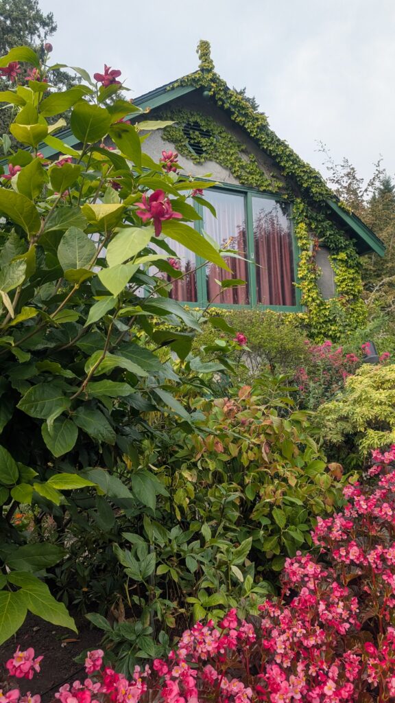 オルガンパビリオン(元乳牛舎)。このパビリオンには、かつてブッチャート夫妻の邸宅にあったパイプオルガンが収められています。この情報は帰ってきてから調べて知ったのですが、草木に囲まれて蔦で覆われた三角屋根のお家がおとぎ話に出てきそうでとても可愛くて妙に心惹かれました。