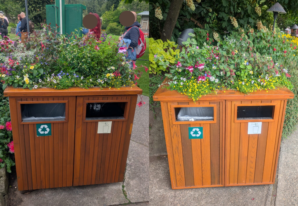 ガーデン内のゴミ箱はプランター付きになっていて、景観に馴染んでいました。こういう心配りにグッとくるし、こんなに綺麗なゴミ箱だと使う方も丁寧に使わなきゃという気持ちが生まれるのでいいな〜と思いました。