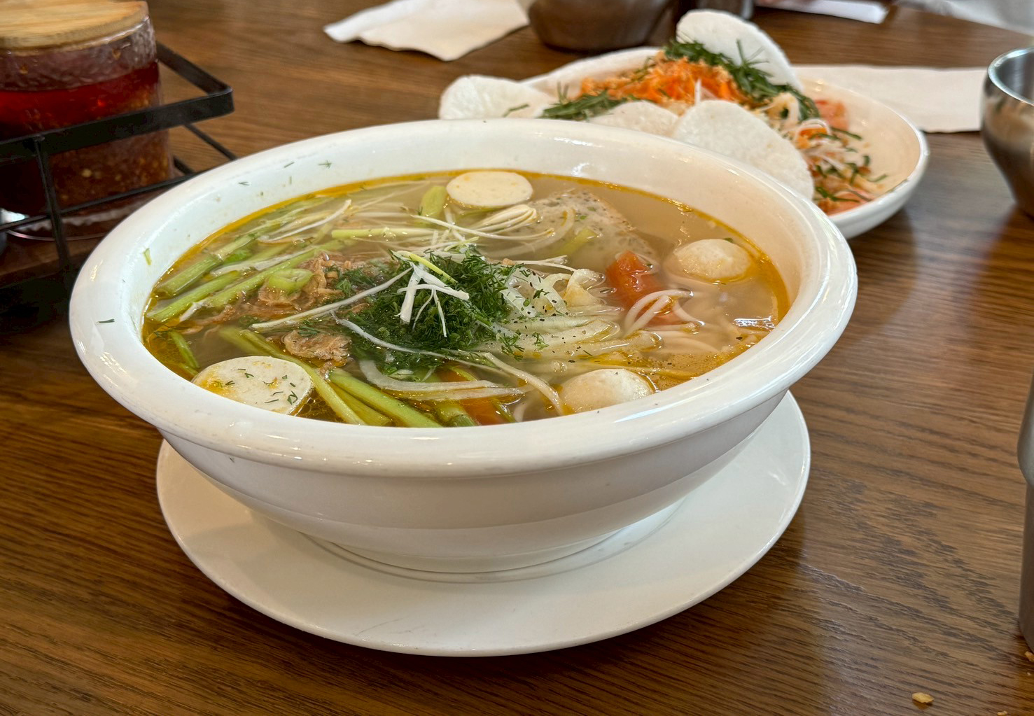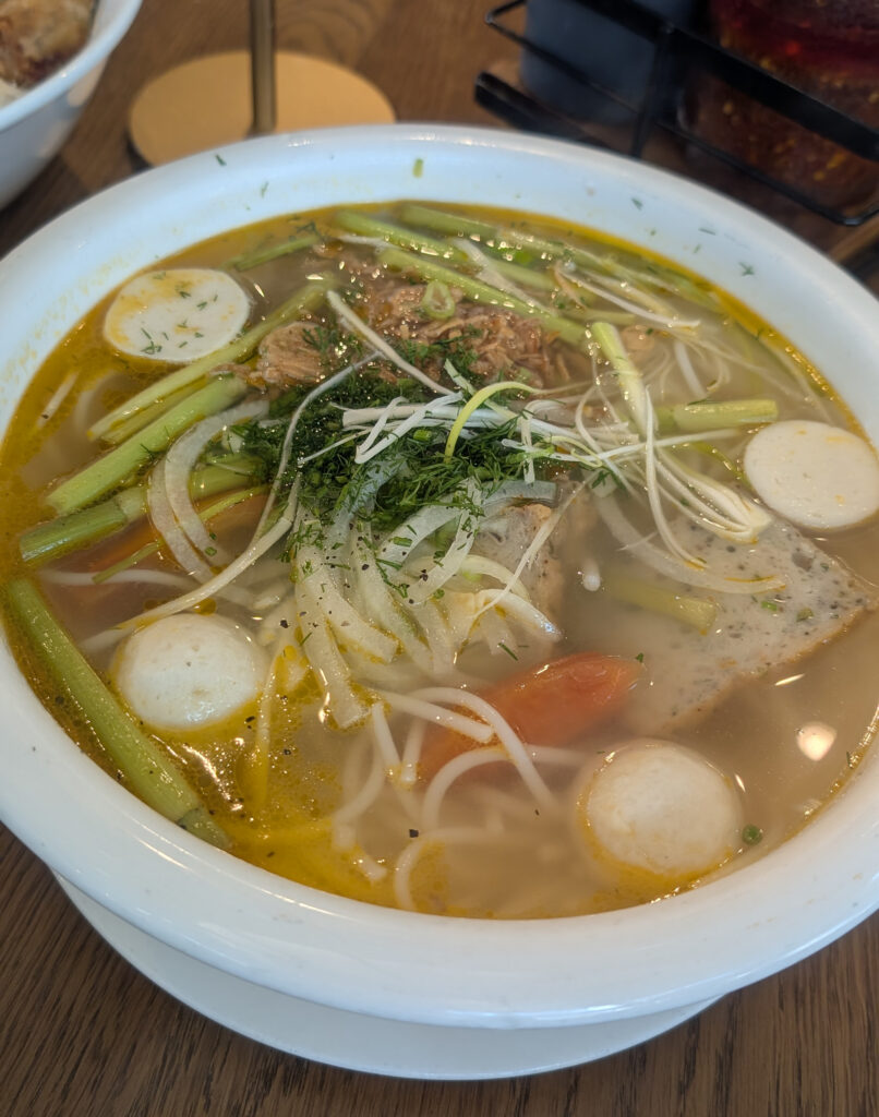 フォーなのかな?これフォー?ってみんなで言いながら食したこちら。確かライスヌードルとは書いてあったと思うんだけど、イメージにある平な麺で半透明なフォーではなく中太ストレートでマットな色味の麺でした。でも味はフォー。パスタみたいにベトナムではいろんな形のフォーがあったりするのかな?と、フォーなのか否かで多少の議論はあったけど(結論出ず)美味しい麺料理!すり身がめっちゃ美味しかった。