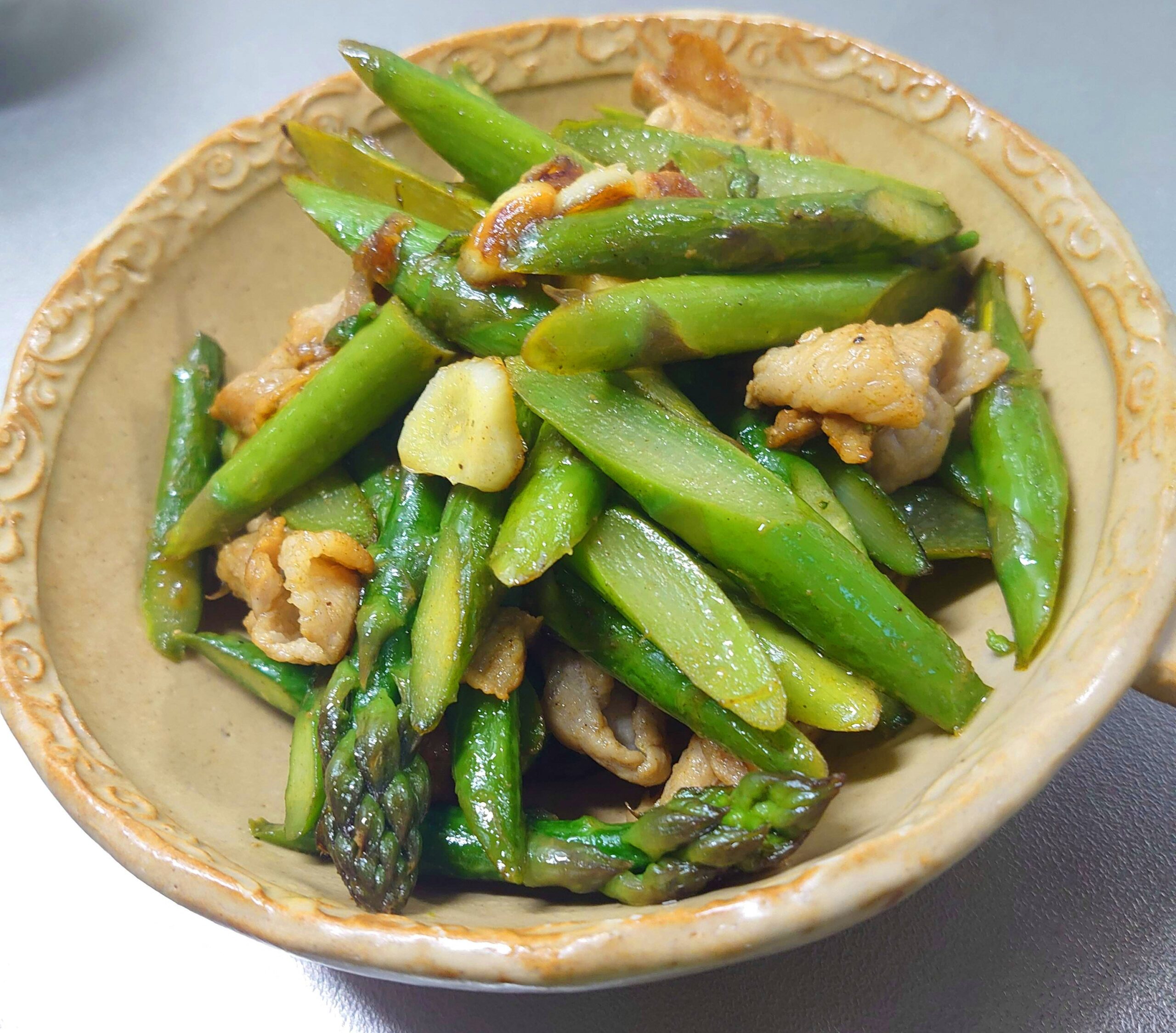 アスパラを堪能したいので、まずは塩胡椒で炒めるだけの