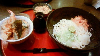 生醤油うどん+ミニ天丼。
