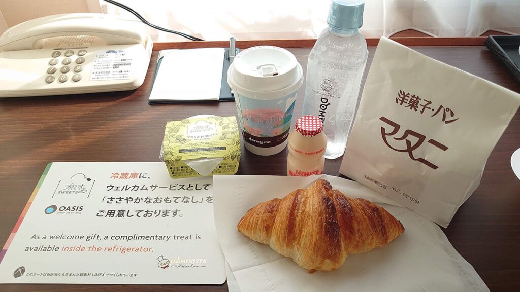 クロワッサンと共に、ドーミーインのおもてなしも一緒に並べてみました。