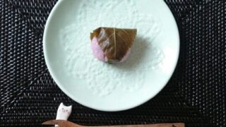 日々 桜餅と猫の箸置きとレースのお皿
