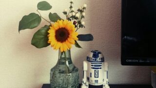 日々 花瓶とひまわり 友達にお花をもらったのに肝心の花瓶が無かったわが家。comodoにいい感じのビンあったじゃん!と後日購入。そのお花も枯れ、ビンだけになってたのでお花を買ってみました。夏らしくヒマワリ。テレビの近くの緑があるとイイって聞いたことがあるので、鵜... 2016.08.06 日々
