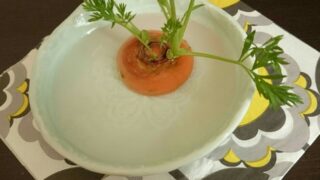 日々 にんじんの成長とpo-to-boの器 今までで一番成長しています。再生野菜。リボベジ、楽しいです。土がないので虫もわかないし。育ったら食べられる♪水の中の蝶々紋が美しいpo-to-boさんの器。にんじんのオレンジが映えますね。 2017.04.09 日々