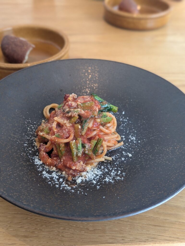 〆のパスタが出てきて、ものすごくお得な気持ちに。