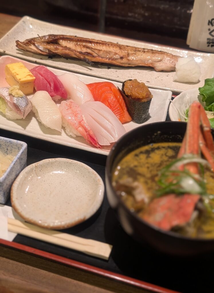 お寿司と焼き魚とお味噌汁がセットになった豪華なランチ!